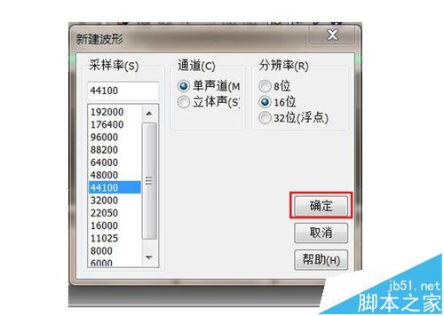 2、安装完成后,打开Audition,切换软件使其处于编辑状态下之后点击“文件”—“新建”生成新的音频文件。在出现的窗口上的采样率、通道和分辨率都是默认值,我们可以不必对其进行修改,确定生成文件即可。