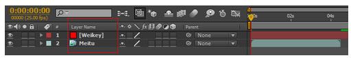 在Ae的Timeline(时间线)窗口中!在Layer Name(图层名)栏中可以被命名为用户定义的名字!
