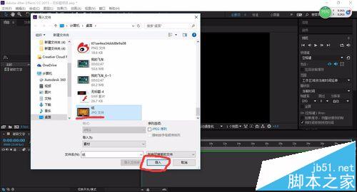 4、打开项目面板,右击该面板,在弹出的快捷菜单中选择"导入>文件..."命令或按住Ctrl+I键打开【导入文件】对话框,选择名为"纸"的图片,单击"导入"按钮,即将"纸"图片导入到项目面板中,如下图所示。