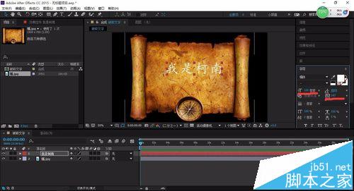 7、在时间线面板中,选择"我是柯南"层,按住Enter键,更改该图层名称为"文字"层,如下图所示。