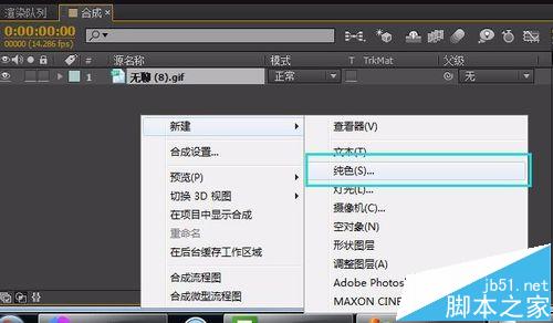 3、新建一个固态层作为合成背景,把背景拖放到最底层。
