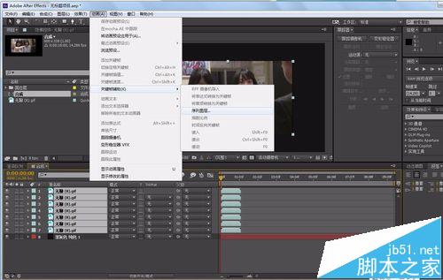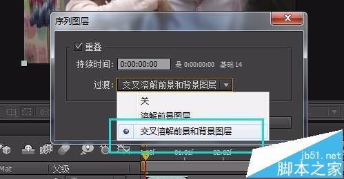 5、在选择菜单上依次选择【动画】- 【关键帧辅助】- 【序列图层】。窗口中选择 交叉溶解前景和背景图层。