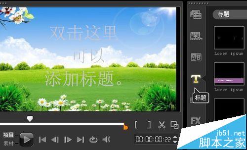 2、点击中间的标题按钮T,双击添加标题文字。