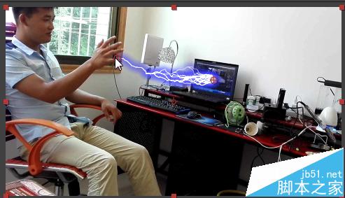 4、设置关键帧了就慢慢移动时间标尺设置 衰减 值大小和 源点,在手推出去的时候,把闪电类型改为 打击 。