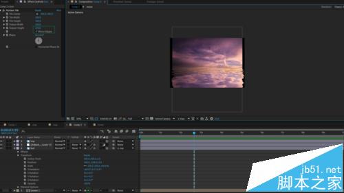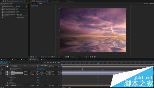 5、预合成分形噪波,选第二项,添加调节层,用预合成的分形噪波做置换映射。上下云彩做父子连接,调节层放在上下云彩之间。