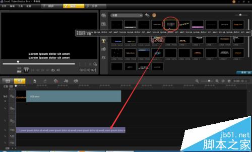 3、选中要编辑的字体模板,安装鼠标左键,把模板拖入到文字轨