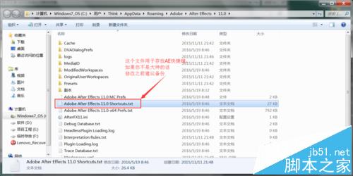 3、Adobe After Effects 11.0 Shortcuts.txt,这个文件就是用来存放AE快捷键的,打开它之前记得备份