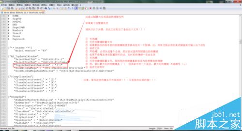 4、这里以AE最大化视图的快捷键为例如果某个快捷键失灵请执行以下步骤,在此之前别忘了备份这个文件。