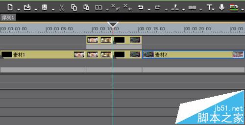 1、首先,将需要转场的两段素材拖到时间线上首尾相接;