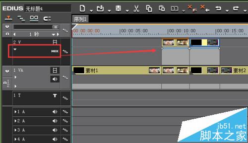 4、点开混合器(透明度)下拉小三角,就以及“MIX”按钮,素材下面会出现蓝线以及关键帧点;