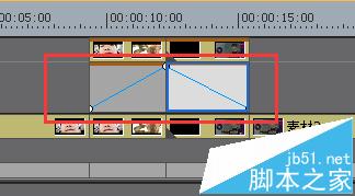 2、截取视频素材在衔接点的前后各一秒,留作转场过渡时间所用;并复制这两小段素材,粘贴到上一个视频层上,让上下两小段视频时间进度一样。