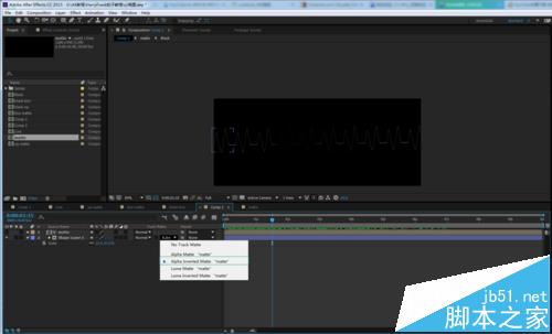 8、复制Black和matte两个预合成,打开matte 2,用Black 2 替换Black,Black 2双击打开,有个固态层,把羽化设为0,模式:Add。