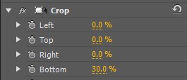 5、 在特效控制台面板中将底部的buttom值增大,直到下面三行的文字都被裁剪掉为止。这里我们设置为70.