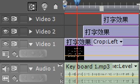 再将时间线时间不断调为00:00:03:00,00:00:06:00,00:00:09:00,根据上面的两个时间的对等,这样上面的素材就可以将下面的素材进行覆盖,最终实现了打字效果的制作。