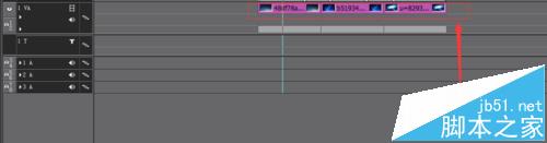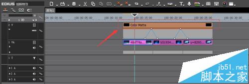 4、将黑色色块素材拖到三张照片轨道上方。
