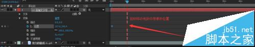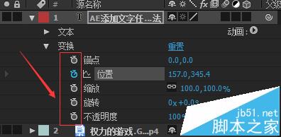 5、选择文字图层,点开文字图层前面的小三角,点开“变换”前面的小三角,这个时候我们就看到了“位置”。点一下位置前面的小秒表。如图。建立位置关键帧。