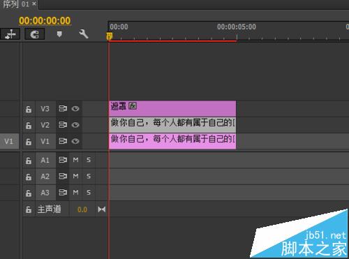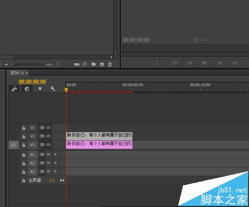 4、在项目面板中找到新建的那个字幕,然后拖到第三个轨道上。