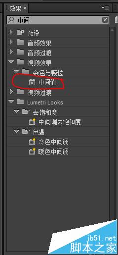 6、最后,在特效面板中找到中间值特效,添加到轨道二的图片素材上,调整参数即可得到满意的效果。