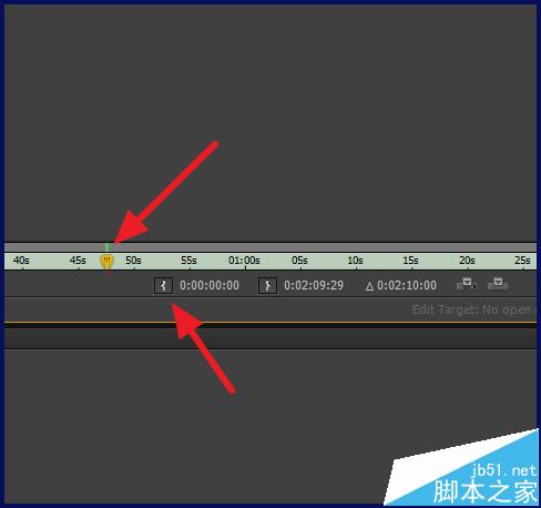 7、如果已经建好合成,将音频拖入合成后,将滑块拖动到要剪裁的位置
