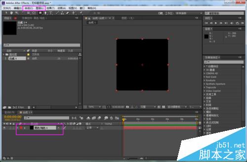 1、新建合成,尺寸为500*500,时间设置为五秒。新建固态层,制作成合成大小。