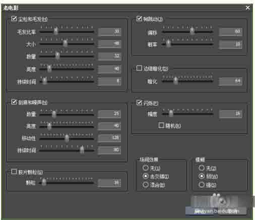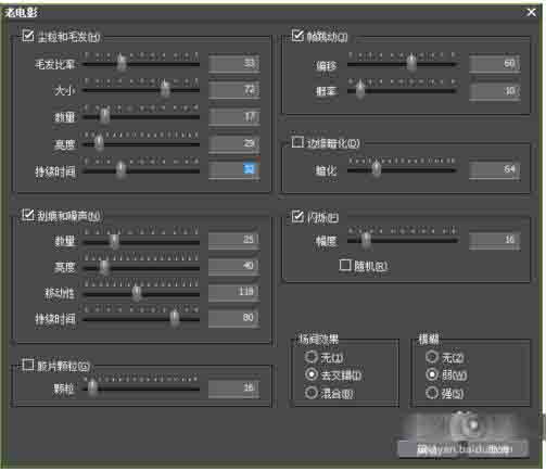 6、双击老电影的选项,弹出对话框,好了,这个就是我们要设置的参数,可以根据需要去调节。