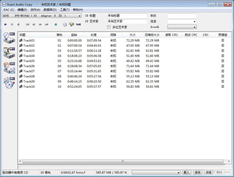 Exact Audio Copy 安装完毕后运行,界面如下图: