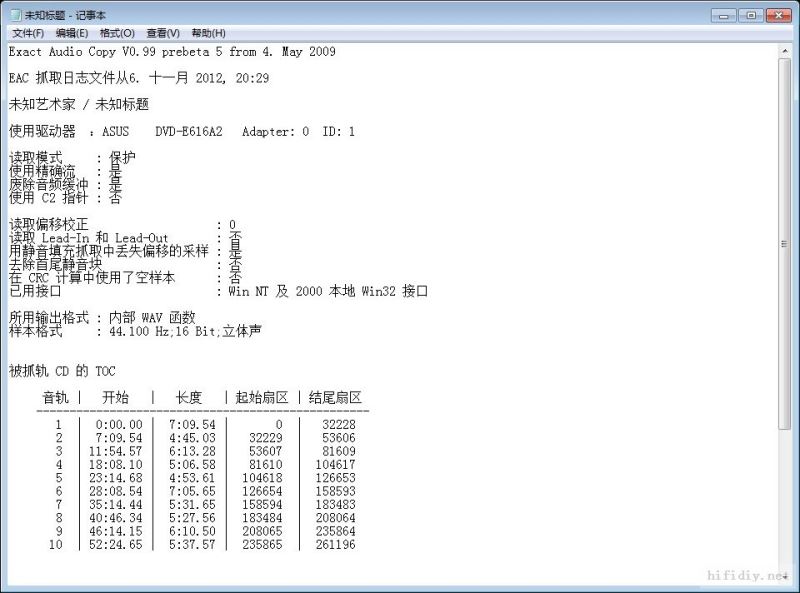 得到的整轨的WAV文件与CUE和抓轨记录LOG
