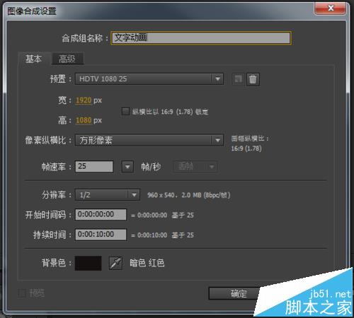 1、打开AE合成软件,新建合成,并命名为“文字动画”。