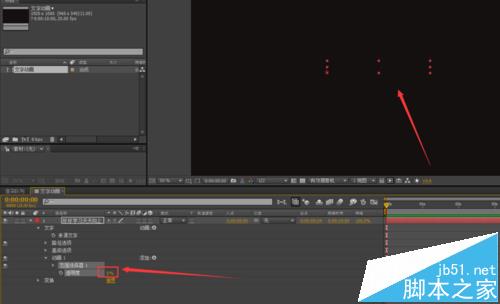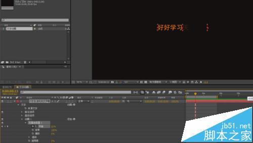 6、然后再在时间线一秒处,将开始处的数值调成一百,到此文字逐字出现的动画完成。