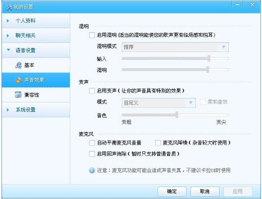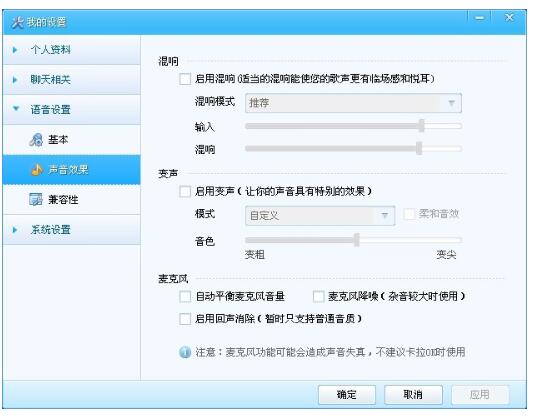 也可以使用混响、变声效果以及麦克风调节设置。