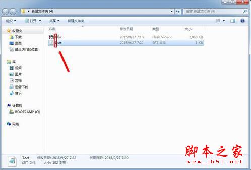 首先在视频文件同一个目录下新建一个文本文件,改名为xxx.srt , xxx和视频的文件名相同,比如你有一个abc.mp4,那么文本文件就改名为abc.srt,图中,我的视频叫1.flv,那么我的字幕就叫1.srt了