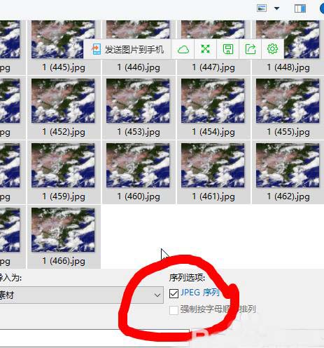 3、导入文件,一定要选中“jpeg序列”选项。
