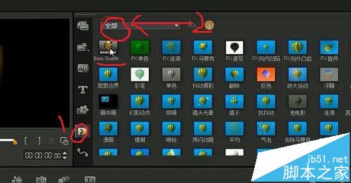 6、我们先随便添加一个视频到覆叠轨上去,然后找到滤镜,点击全部,找到第一个有一个很大的G子母的,就是G滤镜了。
