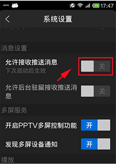 PPTV网络电视手机端如何关闭自动推送消息功能?首先进入PPTV网络电视点击上方【三横键】,然后点击【系统设置】;然后往下拉,看到消息设置,点击关闭允许接收推送消息即可。