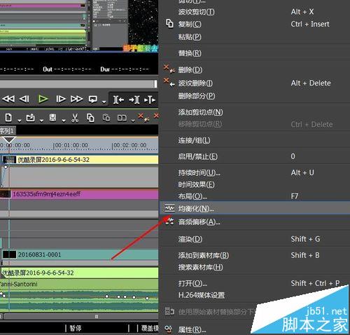 7、单击素材菜单——在弹出的菜单列表中选择均衡化命令,也可以弹出均衡化的对话框。