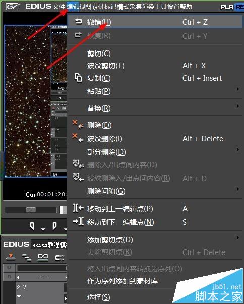 Edius撤销快捷键是Ctrl+Z,恢复的快捷键是Ctrl+Y