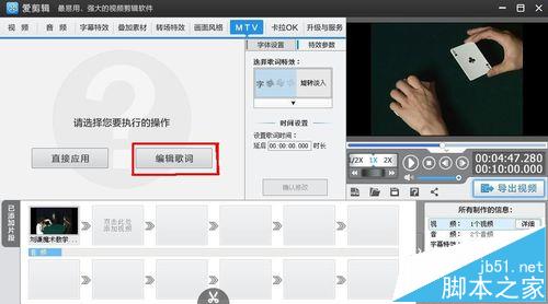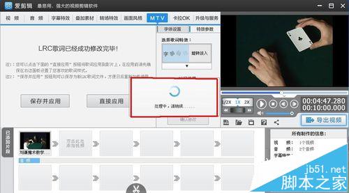 4、然后点编辑歌词,然后点下一步,然后点直接应用,然后等歌词进入