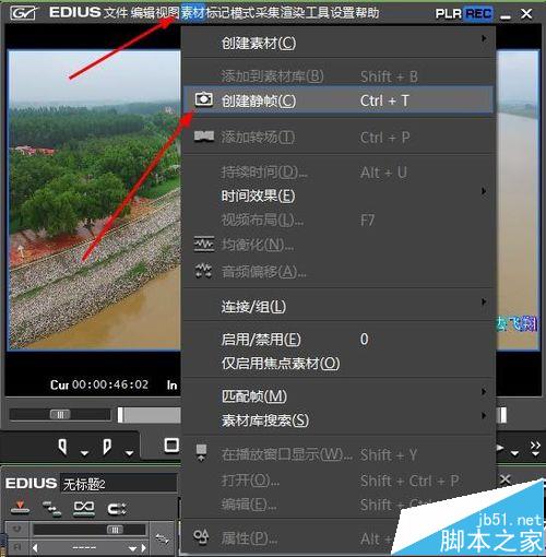 3、单击素材菜单——在菜单列表单击——创建静帧命令