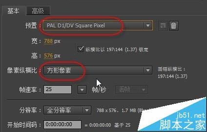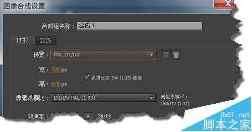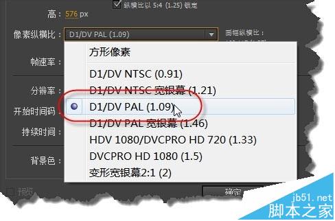 5、下面我们看一下像素的纵横比,即像素的高宽比。你选择PAL D1/DV的话,我们像素的纵横比一般选择1.09