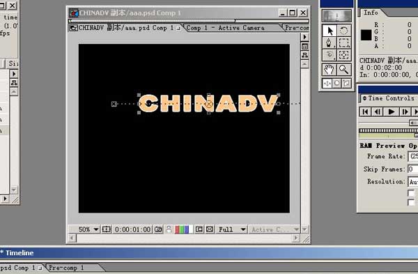 再把该字层自身做嵌套。为什么要做嵌套?因为我的这个字层是photoshop中的一层,大家都知道该层的大小就是字本身的长宽,而在做displacement map置换时,需要在同尺寸、同位置进行变换,我的a.tga文件是720*576大小,因此该字层也要720*576,嵌套后他的大小就是720*576。