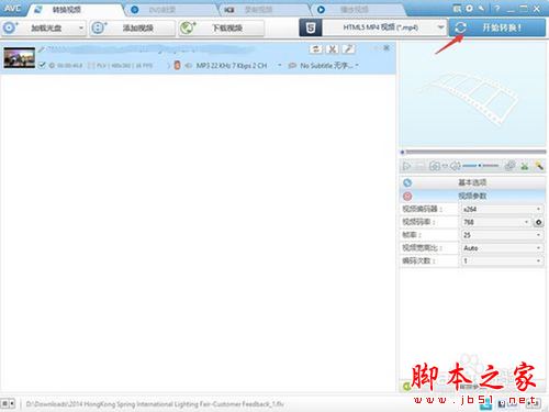 所有参数都设置好后,点击开始转换按钮,进行视频转格式