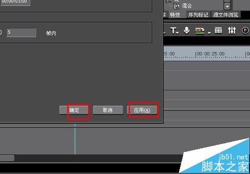 8、先点击应用,再点击确定,回到edius界面中,插入的字幕就不会在自带淡入淡出效果,