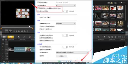 3、在“参数选择”里面勾选第2个选项“编辑”选项里面的“用调到屏幕大小作为覆叠轨上的默认大小”然后点击确定。