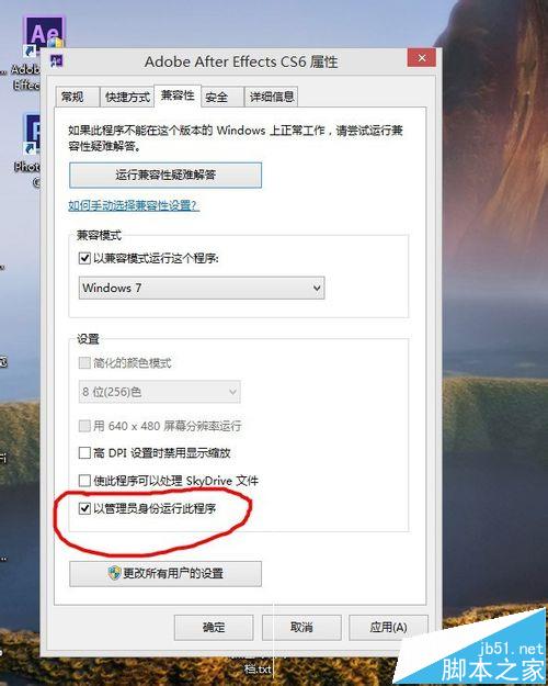 1、点击AE的桌面图标,打开属性,找到兼容性,看下图。