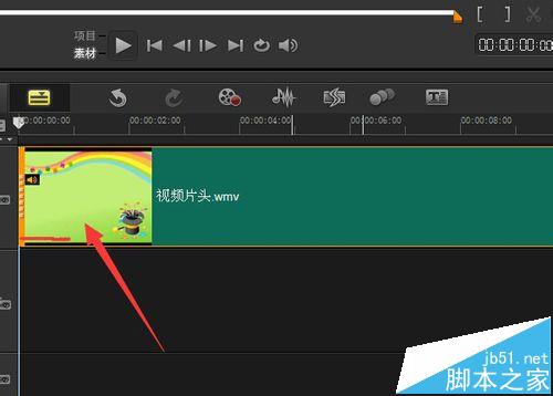 4、在媒体库中找到视频文件,把它拖拽到视频轨,如图所示。