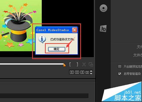 9、渲染完成,弹出一个小窗口,已成功渲染该文件,点击确定,到此,视频转换音频大功告成,如图所示。