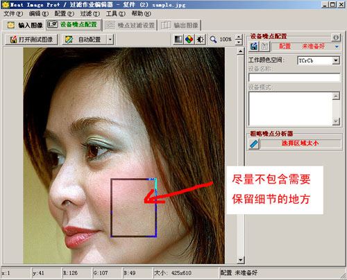 (2)现在要分析噪点的区域的取样工作完成,下面进行精确的调整以便更精确的定义出噪点。