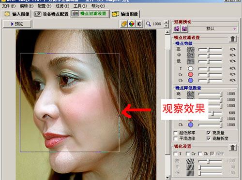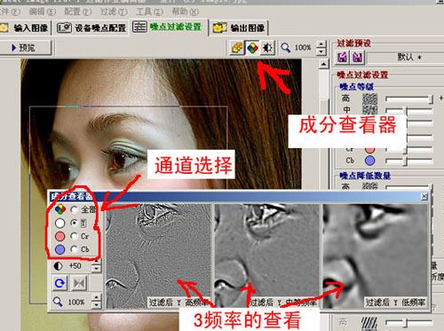 你可以在成分查看器中看到没个通道里每个频率的在噪点变化,并根据情况调整噪点等级和噪点降低数量。用鼠标点击可以看到处理前的效果,这样反复点查看调整前后的差异。