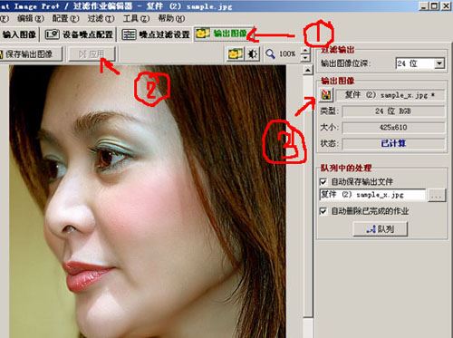 4、输出图象: 跟第一步比稍微有点难度,首先点输出图象,点应用,点保存,找个地方一存OK!