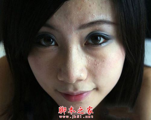 第一步,我们需要在PS里进行处理,对原图的较大的豆豆和伤疤进行修复,可以用仿制图案工具,和污点修复工具,看自己喜好,完成后得到下面的效果。